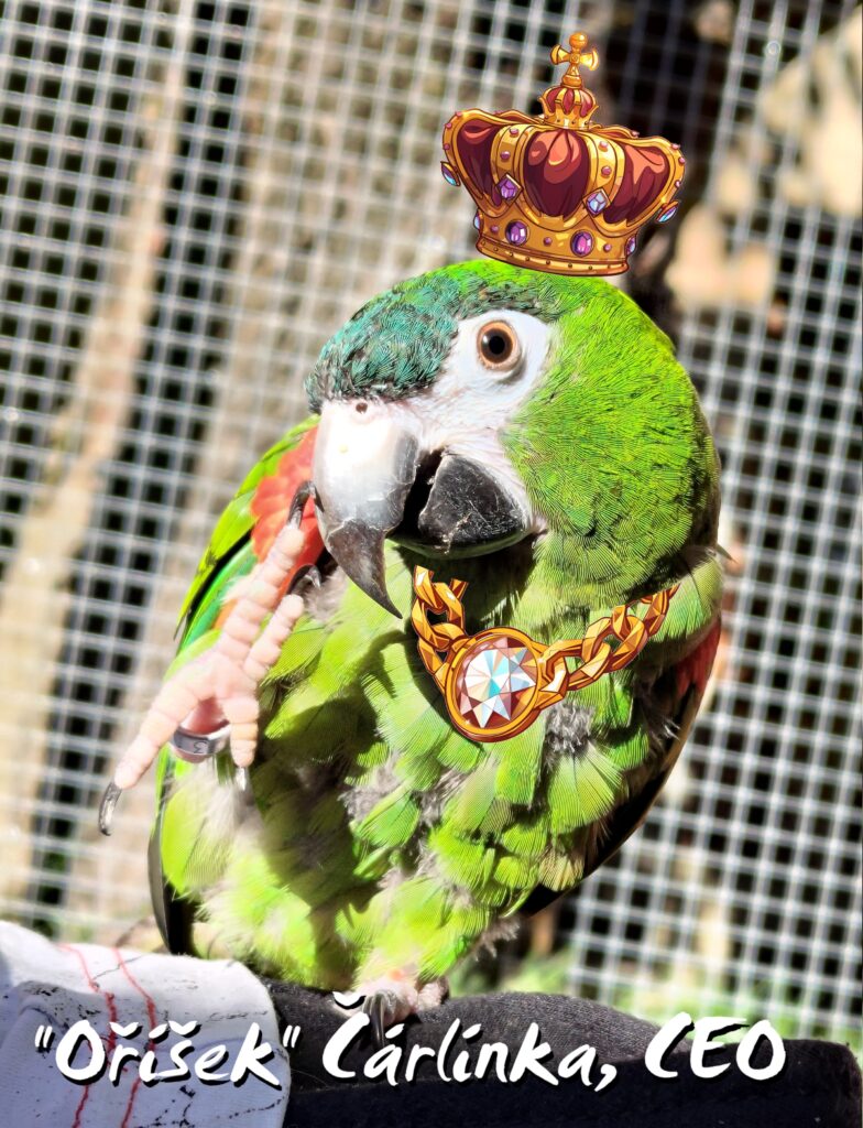 Čárlínka, generální ředitelka firmy, papoušice, která svou osobností a odhodláním dokázala něco, co by málokdo čekal – založila úspěšný eshop. (S drobnou pomocí Anakínka, marketingového manažera a naší zaměstnankyně). Tento příběh je inspirací nejen pro papoušky, ale i pro lidi po celém světě.