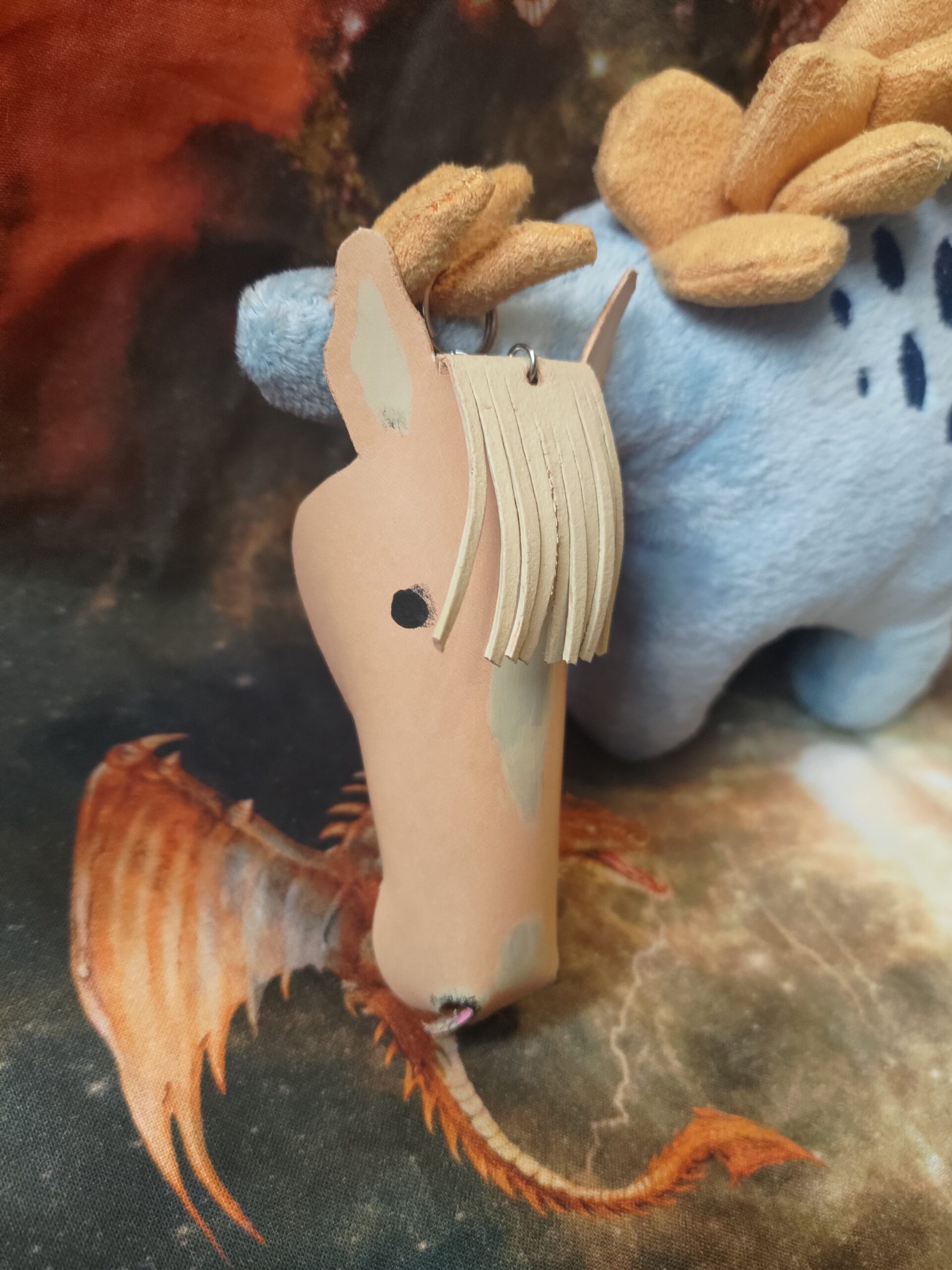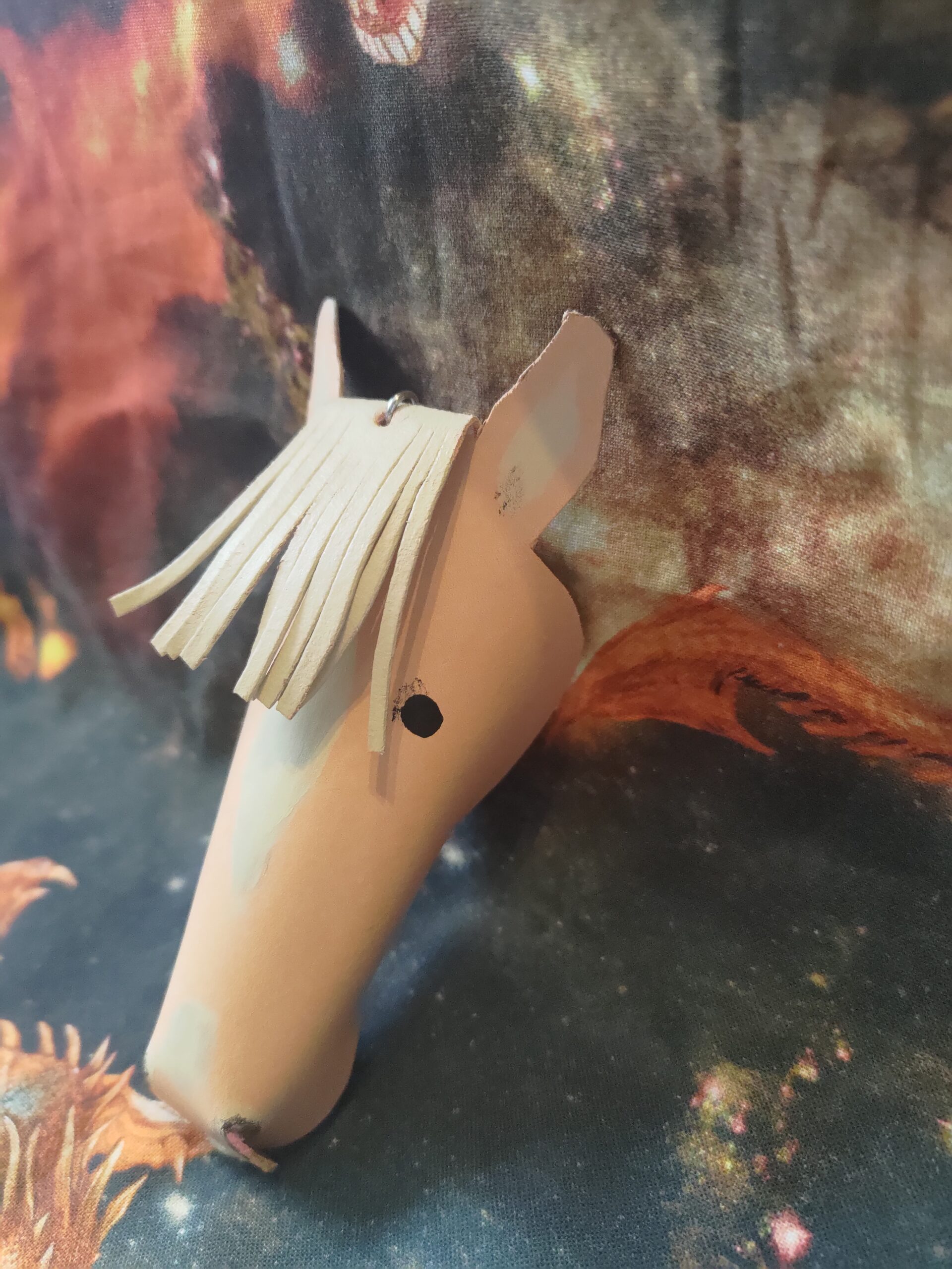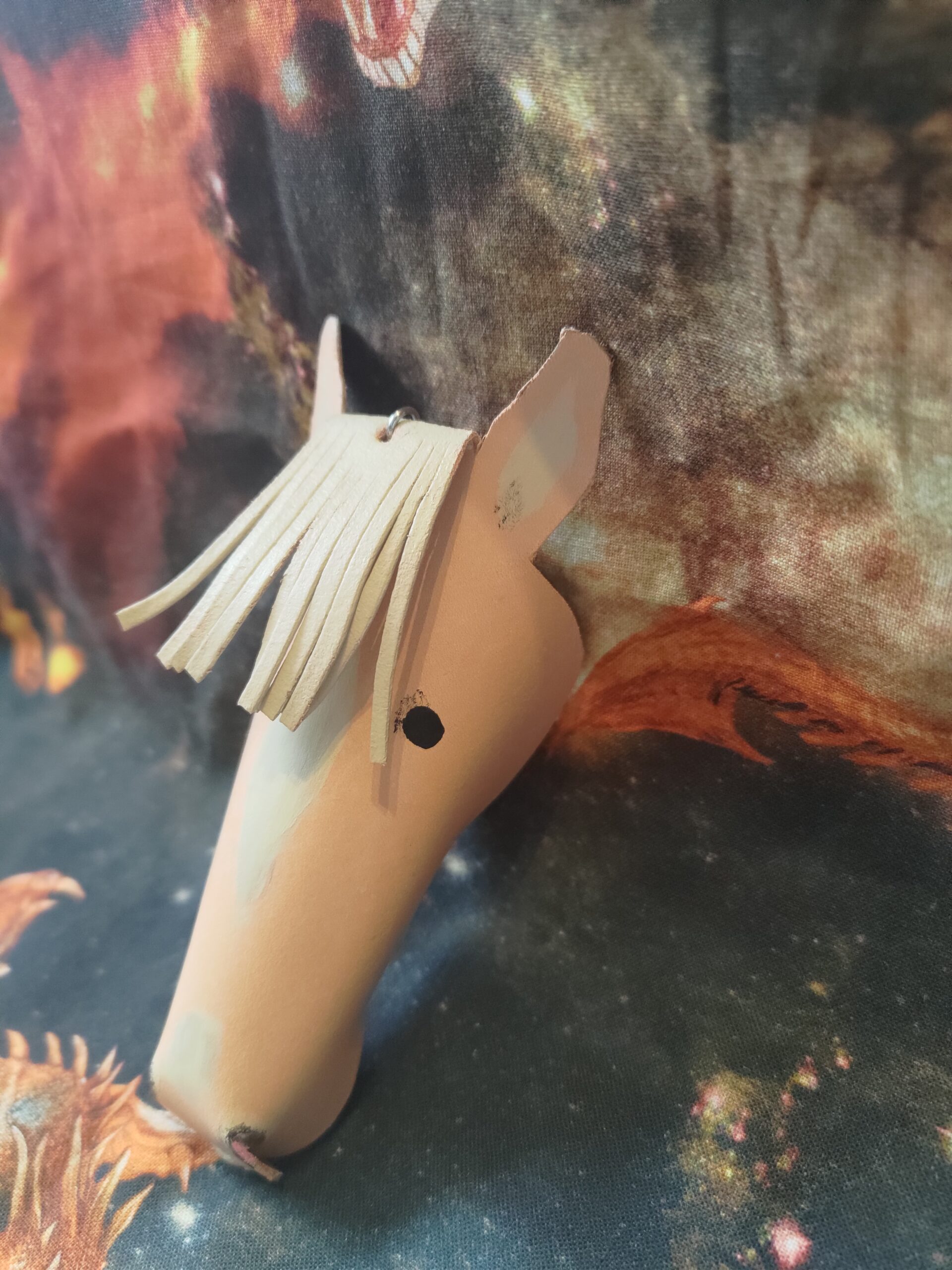 Kožená klíčenka, koňská hlavička.PalominoDélka cca 12 cm.