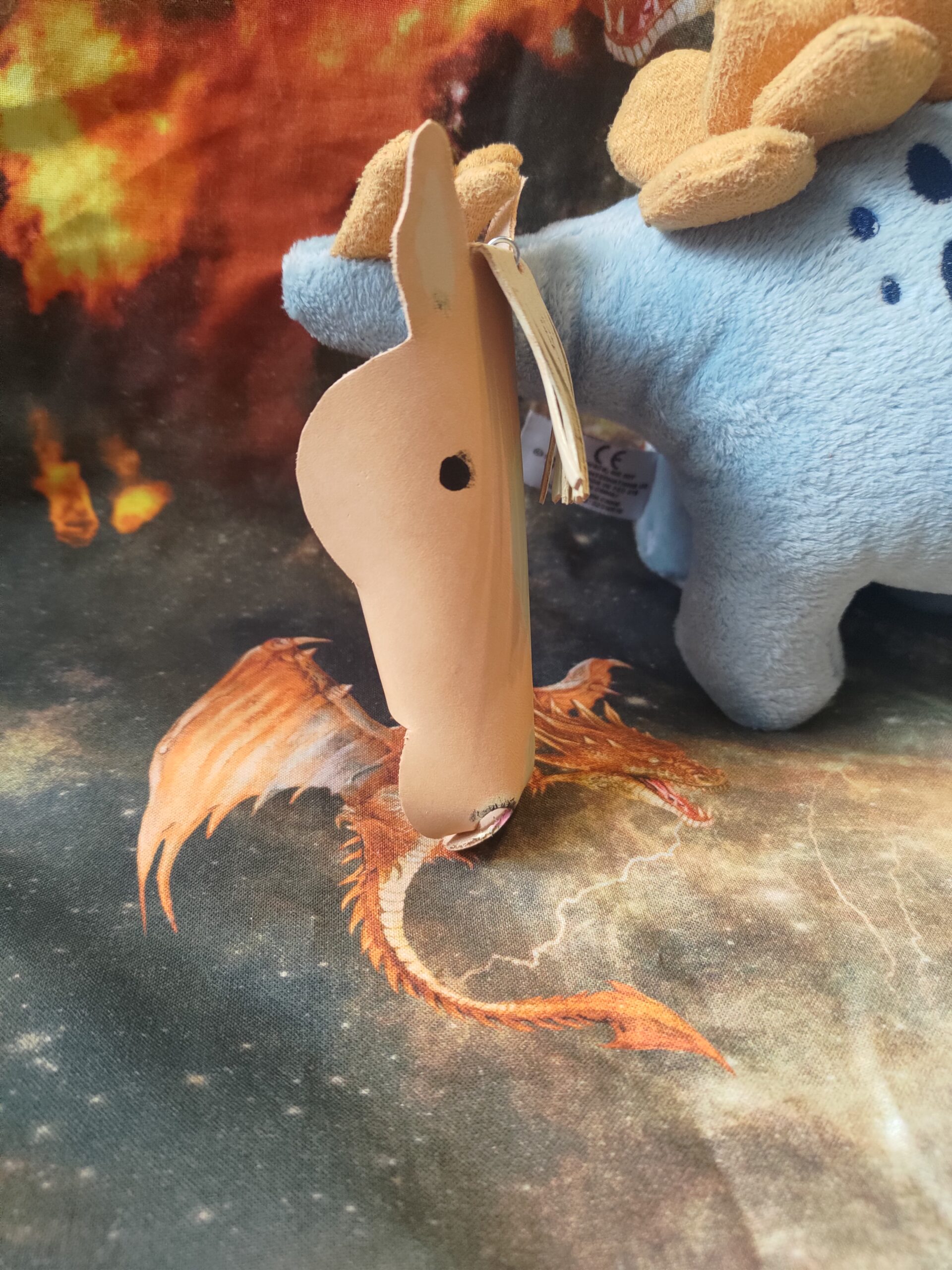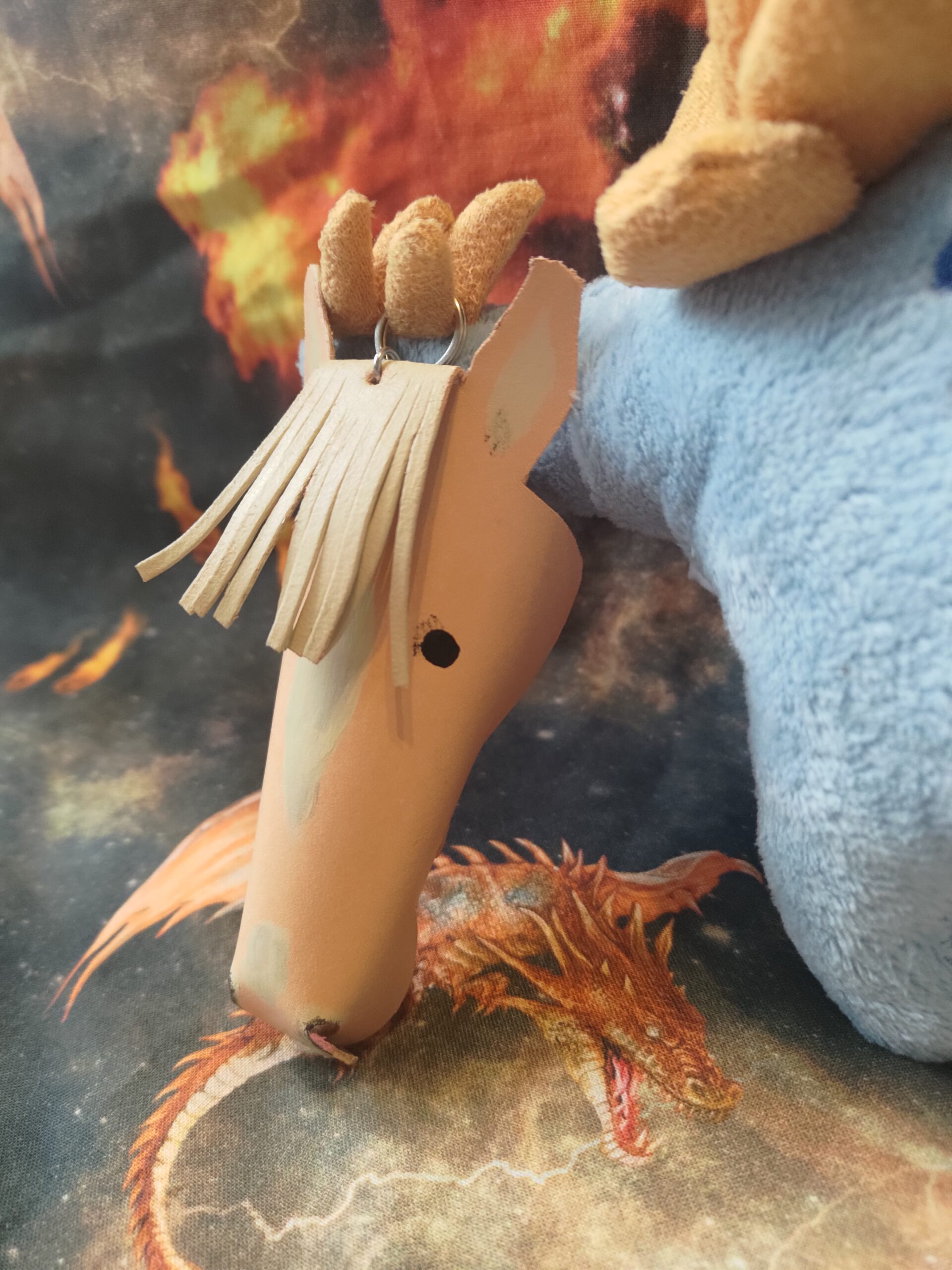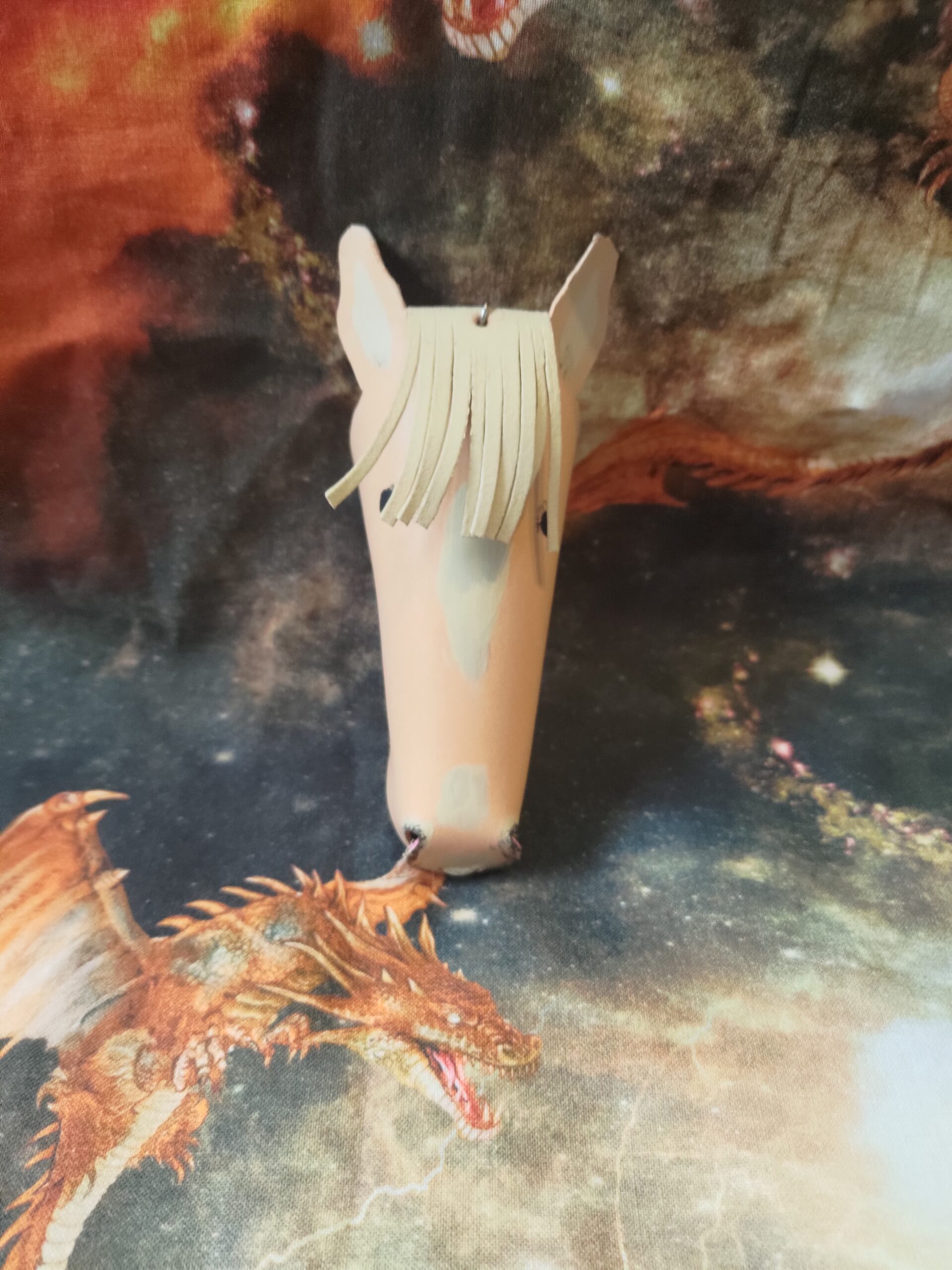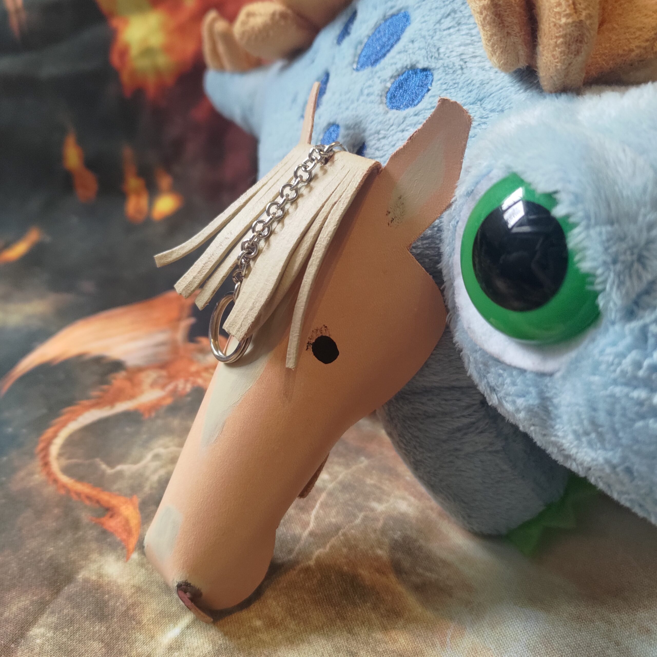 Kožená klíčenka, koňská hlavička.PalominoDélka cca 12 cm.