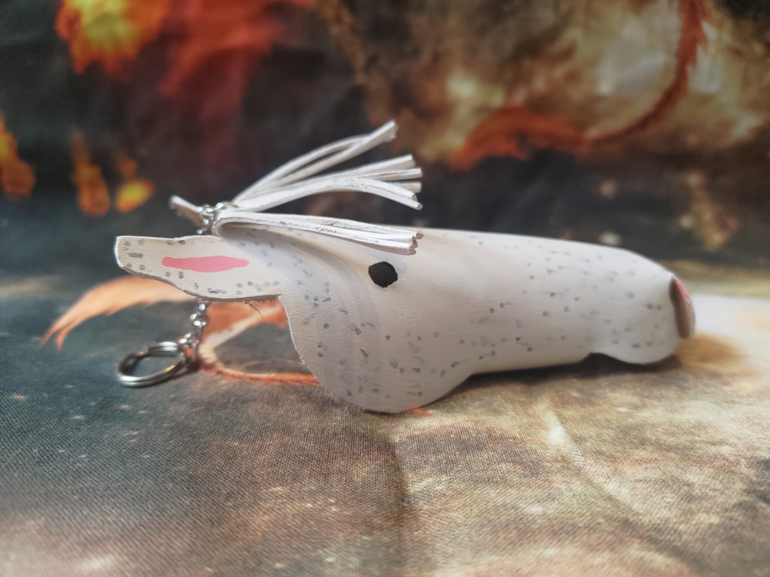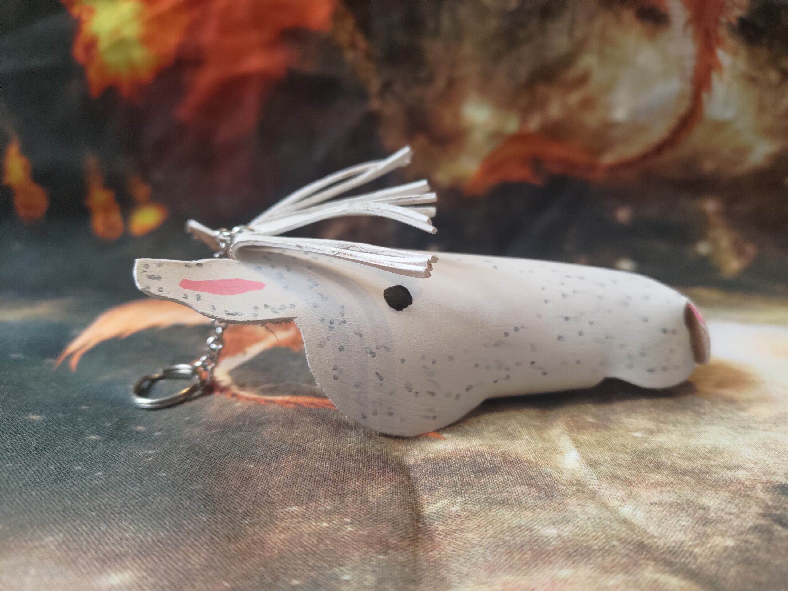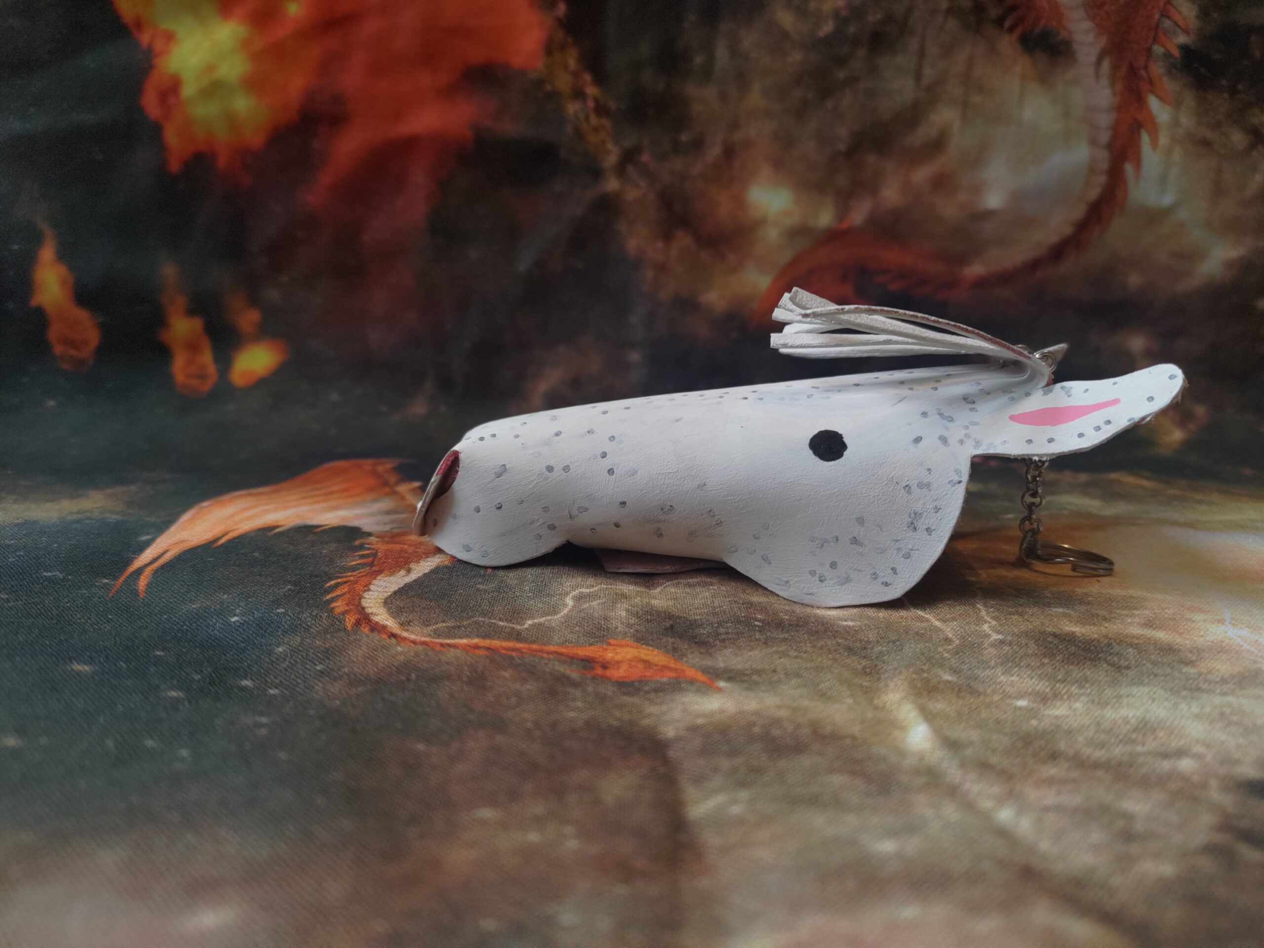Kožená klíčenka, koňská hlavička.Tečkovaný běloušDélka cca 12 cm.